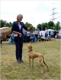 Auch in diesem Jahr nahmen wir an der German Winner Show des VDH in Gelsenkirchen teil, die wieder im Windhundstadion Emscherbruch stattfand. Die Rasse Kritikos Lagonikos wurde am Sonntag, dem 27. Juli 2025 von Klaus Strack gerichtet. Außer Antara in der Championklasse hatte er einen Rüden in der offenen Klasse zu bewerten: "Quality Hounds Aiantas" ist im November 2024 aus Kreta nach Deutschland importiert wurden, seine Züchter Maria Bouchlaki und Nikos Anetakis haben diesen wertvollen jungen Rüden wegen bereits vorhandener Nachzucht vertrauensvoll in die Hände von Sandra und Oliver Giesinger gegeben. Er konnte mit der Bewertung Vorzüglich 1 als bester Hund der Rasse den Titel German Winner 2025 erringen und bekam die Anwartschaft auf den Deutschen Schönheitschampion CAC.