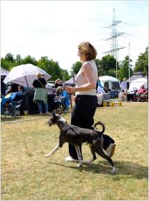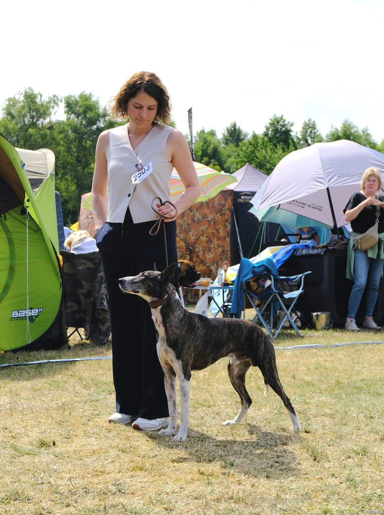 Auch in diesem Jahr nahmen wir an der German Winner Show des VDH in Gelsenkirchen teil, die wieder im Windhundstadion Emscherbruch stattfand. Die Rasse Kritikos Lagonikos wurde am Sonntag, dem 27. Juli 2025 von Klaus Strack gerichtet. Außer Antara in der Championklasse hatte er einen Rüden in der offenen Klasse zu bewerten: "Quality Hounds Aiantas" ist im November 2024 aus Kreta nach Deutschland importiert wurden, seine Züchter Maria Bouchlaki und Nikos Anetakis haben diesen wertvollen jungen Rüden wegen bereits vorhandener Nachzucht vertrauensvoll in die Hände von Sandra und Oliver Giesinger gegeben. Er konnte mit der Bewertung Vorzüglich 1 als bester Hund der Rasse den Titel German Winner 2025 erringen und bekam die Anwartschaft auf den Deutschen Schönheitschampion CAC.