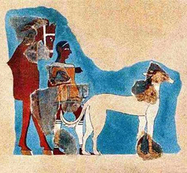 Dieser Eindruck wird bestätigt durch die Ausgrabungen der British School of Archaology in Roussolakos bei Palaikastro im Osten Kretas. Hier befand sich in minoischer Zeit die größte Siedlung Kretas, Eliá, mit einem bedeutenden Heiligtum des Diktäischen Zeus. Ein in diesem Heiligtum entdeckter Siegelabdruck zeigt einen Jäger mit zwei Hunden, die eine Kretische Wildziege angreifen. In unmittelbarer Nähe fand man zwei Brunnen aus spätminoischer Zeit (ca. 1450 v. Chr.) und darin die Skelette von verschiedenen Säugetieren, Pferden, Schafen, Ziegen, Schweinen usw., 55% dieser Knochen stammten jedoch von Hunden, unter ihnen waren 28 vollständig erhaltene Hundeskelette. Die Hunde waren verschiedenen Alters, vom jungen Welpen bis zum sehr alten Hund, dessen Zähne bis auf die Knochen abgenutzt waren. Wie uns der leitende Archäologe der Ausgrabung, Alexander MacGillivray, erklärte, wurden diese Hunde nach ihrem Tod der Gottheit als Opfer dargebracht. Sie wurden mit Grabbeigaben bestattet, und die Art der Bestattung weist auf den hohen Status des Hundes im minoischen Kreta hin. Der Hund war ein heiliges Tier, denn er war wichtig für die Jagd, die nicht nur der Nahrungsbeschaffung diente, sondern auch eine rituelle Handlung darstellte. Die Jagdbeute, meistens Hase oder Wildziege, wurde als Opfertier verwendet.