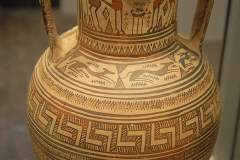 Von 1100 v.Chr. bis 480 v.Chr. beherrschen die Dorer die Insel, die Eteokreter (echten Kreter) ziehen sich in die abgelegenen Bergregionen im Osten der Insel zurück. Das interessanteste Fundstück einer Hundedarstellung aus der sogenannten Geometrischen Epoche Kretas (900-650 v. Chr.) ist eine Metallklinge, die in der Ida-Höhle im Psiloritis-Gebirge gefunden wurde und heute im Museum von Iraklion zu sehen ist (Saal 121, Vitrine 169). In der Nekropole von Orthi Petra bei Eleftherna (900-680 v.Chr.) wurde bei Grabungen unter der Leitung von Prof. Nikos Stampolidis das Skelett eines Hundes gefunden, das alle Merkmale des Kritikos Lagonikos aufweist. Es lag direkt neben der Amphore mit dem Skelett eines etwa 15 Jahre alten Jungen.