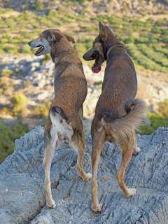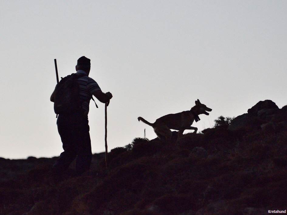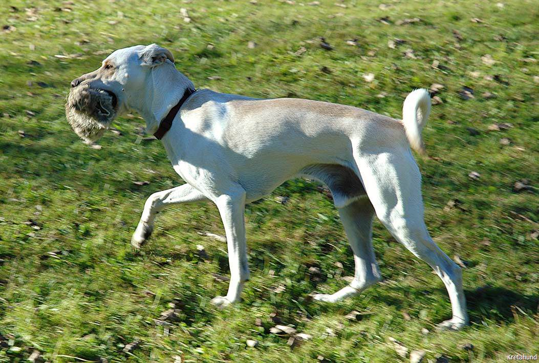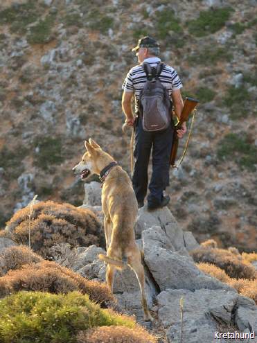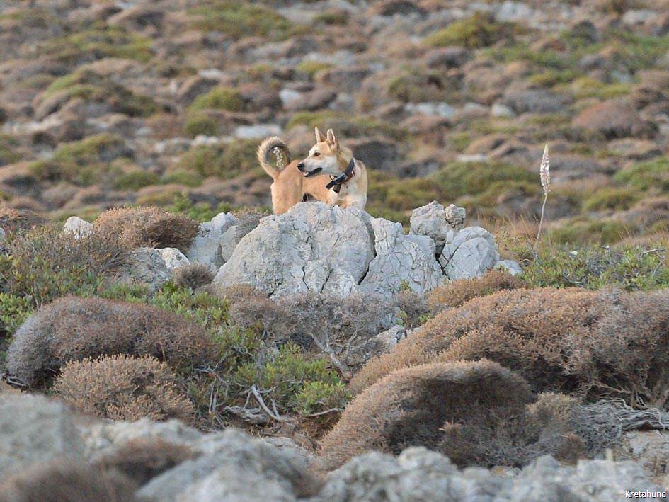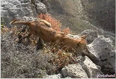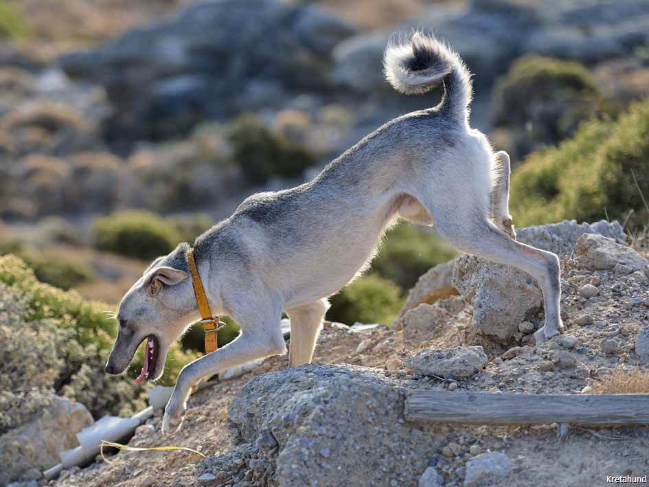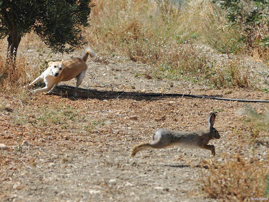 Die Hasenjagd auf Kreta stellt aufgrund der extremen Geländeverhältnisse und des Klimas besonders hohe Anforderungen an die Hunde. Die Härte und Schärfe, die sie dabei an den Tag legen, steht in krassem Gegensatz zu ihrem sonstigen Verhalten. Während der Jagsaison von Mitte September bis in den April fahren die Jäger mit einem oder zwei Hunden in abgelegene Gebirgsregionen. Gelegentlich werden zusätzlich junge Hunde zur Ausbildung mitgenommen. Die Jagd beginnt im Morgengrauen und dauert viele Stunden, oft bei Temperaturen um die 40°. Die Hunde jagen mit allen Sinnen. Der Jäger postiert sich meistens auf einem Felsen und kann von dort seine Hunde, die immer wieder Blickkontakt mit ihm aufnehmen, durch optische und verbale Signale aus großer Entfernung führen. Sie suchen mit der Nase die Spur des Hasen, der sich in Felsspalten oder im Dornengestrüpp versteckt. Dabei verfolgen sie ohne Spurlaut die frischeste Fährte, die direkt zum Versteck des Hasen führt. Die Hunde arbeiten ruhig und leise, sie dürfen bei aller Jagdmotivation nicht hektisch werden, sondern müssen sich konzentrieren, um keine Energie zu verschwenden. Die trockene Witterung, die hohen Temperaturen und der oft sehr starke Wind erschweren das Auffinden der Beute, da die Duftmoleküle, vor allem auf dem kahlen Fels, rasch zerstört werden. Ein großes Problem stellt auch der Staub dar, den die Hunde zwangsläufig mit der Nase aufnehmen und der somit Geruchssinn und Atmung beeinträchtigt und die Hunde zu häufigem Niesen zwingt. Der Kritikos Lagonikos verfügt jedoch über eine Jagdtaktik, die von den Kretern "Anemistos" genannt wird. Es bedeutet "mit dem Wind - Erfassen der Luft". Dazu bleiben die Hunde stehen, nehmen die Nase hoch, stellen sich manchmal auch auf die Hinterbeine und bewegen sich gegebenenfalls im Kreis. Sie saugen den Geruch der Beute mit Nase und oft leicht geöffnetem Fang ein und orten so die Beute. Man kann gut sehen, wie sie dabei die "Backen aufblasen" und den Geruch regelrecht "kauen". Eine weitere erfolgreiche Taktik besteht im Belecken des Untergrundes, um die wenigen noch vorhandenen Reste der Fährte besser aufnehmen zu können. Am lebhaften Rutenspiel der Hunde erkennt der Jäger, wenn sich die Beute in unmittelbarer Nähe befindet. Mit gespitzten Ohren lauschen sie auf jede Regung ihres Opfers. Währenddessen kommunizieren die Hunde über ihr Rutenspiel miteinander, und das plötzliche Erstarren eines Hundes, mit hoch aufgeringelter Rute, zeigt dem Jäger, daß das Versteck gefunden wurde. Wenn der Hase aufgejagt worden ist, beginnt die Hatz über scharfkantige Felsen und dornigem Bewuchs, wobei kurz der "Kampfschrei", ein hohes Bellen, zu hören ist. Dabei vollführen die Hunde atemberaubende Sprünge und Wendungen, um dem hakenschlagenden Hasen den Weg abzuschneiden. Oft müssen tiefe Schluchten und meterhohe glatte Felswände überwunden werden. Mit Eleganz und Leichtigkeit bewegen sich die Hunde in dem schwierigen Gelände und erreichen dabei auf kurzen Distanzen Geschwindigkeiten von ca. 70 km/h. Die Hunde arbeiten miteinander und die Erfahrung lehrt sie "wie der Hase läuft". Wenn es ihnen nicht gelingt, den Hasen auf den ersten 100 metern im Lauf zu packen, verfolgen sie ihn noch ca. 500 bis 1000 meter und kehren dann zum Jäger zurück. Die Hunde wissen aus Erfahrung, dass ihre Chancen mit der Entfernung geringer werden und begeben sich auf eine neue Suche. Wenn ein Hund die Beute gefasst hat, apportiert er sie seinem Herrn, ohne daß die anderen Hunde versuchen, sie ihm streitig zu machen. Die traditionelle Jagdweise ohne Gewehr ist heute nicht mehr erlaubt. Die Jäger müssen über viel Erfahrung und gutes Timing verfügen, um den Hund beim Schuß nicht zu verletzen, da dieser sich sehr nah hinter der Beute befindet, und oft hat der Hund den Hasen bereits gefangen, bevor der Jäger die Möglichkeit zum Schuß hat.