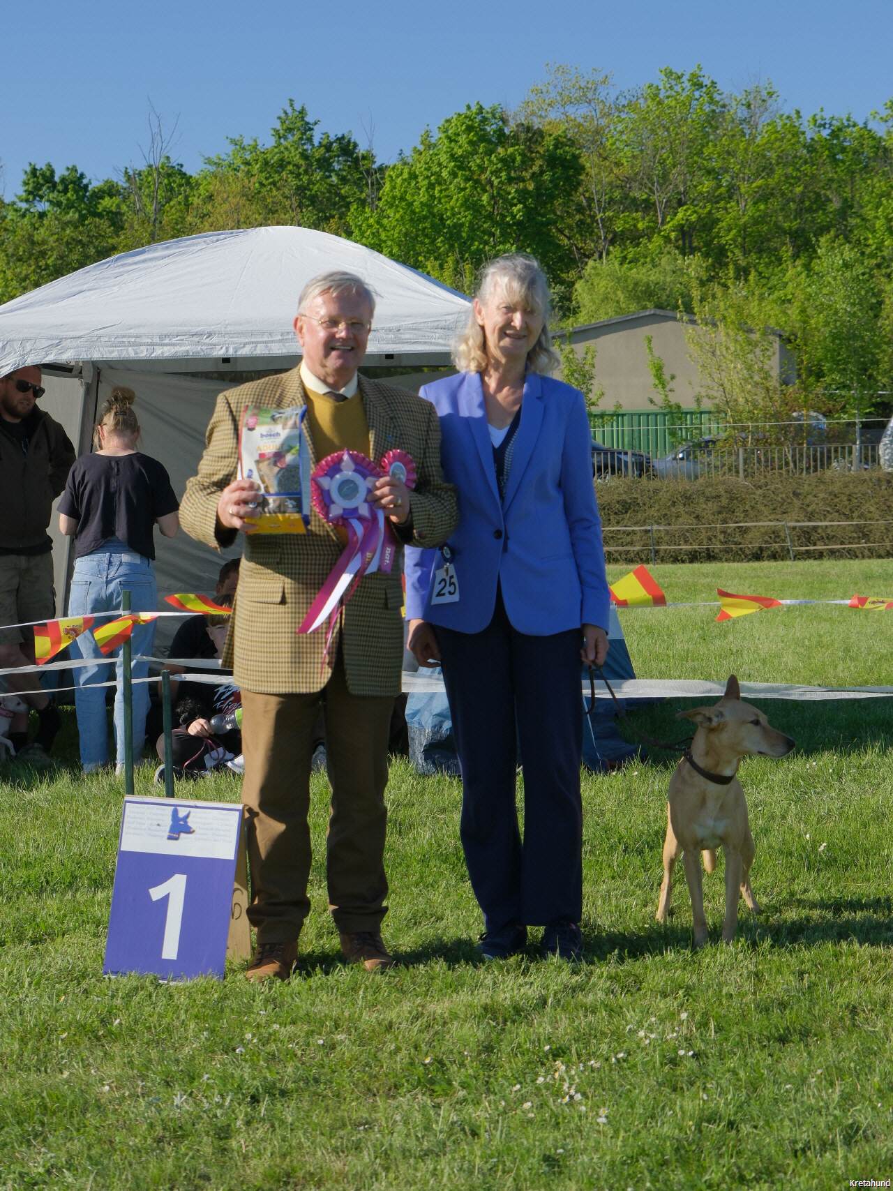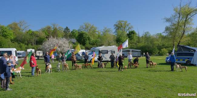 In diesem Jahr fand die Jahresausstellung der mediterranen Rassen auf der Windhundrennbahn in Greppin statt. Bei einer Meldezahl von 28 Hunden waren, mit Ausnahme des Podengo Portugues, alle Rassen der vom DWRV betreuten Rassen der Gruppe 5 vertreten. Der sympathische und humorvolle Zuchtrichter Jan Coppens aus den Niederlanden nahm die Bewertung der ausgestellten Hunde mit großer Sorgfalt und viel Einfühlungsvermögen vor und offenbarte großes Interesse und Sachkenntnis auch beim Kritikos Lagonikos. Er ließ es sich im Ehrenring nicht nehmen, das Publikum über die Herkunft und die Besonderheiten dieser Rasse zu infomieren.