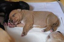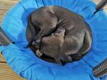 Fouria´s Trächtigkeit verlief weiterhin absolut problemlos. Bald konnte man durch die Bauchdecke die Bewegungen der Welpen nicht nur fühlen, man sah sie sogar. Das Welpenzimmer wurde eingerichtet und Fouria liebte ihre Himmelbett-Wurfkiste. Natürlich haben wir auch schon die Außenbereiche, Terrasse und Garten, welpensicher auf die Rasselbande vorbereitet.