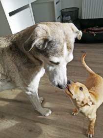 Bei unserem Treffen zum zweiten Geburtstag der "Welpen" am 11.2.2024 in der Wildeshausener Geest konnte Mo bedingt durch den Karneval im Rheinland und der damit verbundenen Pflichten seines Herrchens André leider nicht dabei sein. Aber Pelle wiederzusehen war ein tolles Erlebnis, er hat uns und seine ehemalige Hundefamilie sofort wiedererkannt und wir hatten alle viel Spaß.