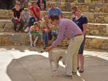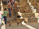 Die 2. Zuchtschau für die Rasse Kritikos Lagonikos wurde am 4. September 2016 vom Kritikos Lagonikos Club Kreta (OKLA) durchgeführt. Das Minoische Theater des Reitvereins Karteros bei Heraklion bot eine perfekte Kulisse für die Vorstellung dieser antiken Hunderasse. Mehrere hundert Besucher kamen von ganz Kreta, aber auch dem griechischen Festland und den anderen Inseln, um ihre Hunde für die Zuchtanerkennung und die Eintragung in das Zuchtbuch des griechischen Hundezuchtverbandes K.O.E. beurteilen zu lassen. Diese Aufgabe meisterte der international anerkannte Zuchtrichter Georgos Kostopoulos mit souveränen Bewertungen und freundlichen, verständlichen Erklärungen bei jedem vorgestellten Hund. Er erläuterte den außerordentlich interessierten Zuschauern auf den Rängen des Amphittheaters die Einzelheiten des Rassestandards des Kritikos Lagonikos. Etliche Fragen aus dem Publikum wurden beantwortet, vobei es vor allem um die Kriterien bei der Zuchtauswahl ging. Die vorgestellten Hunde waren hinsichtlich des Rassetyps und bezogen auf die Bedingungen des Rassestandards von deutlich besserer Qualität als im Vorjahr. Entsprechend strenger bewertete der Richter im Hinblick auf die Zuchtzulassung des jeweiligen Hundes. Schließlich bekamen 36 Hunde die Anerkennung und wurden zur Eintragung in das Zuchtbuch gemeldet. Auffällig viele junge Leute stellten ihre Hunde aus, auch Familien mit kleinen Kindern, die sich zwischendurch mit den Vierbeinern beschäftigten. Alle Hunde waren gesund, gut gepflegt und offenbar gut sozialisiert. Eine zweite Gruppe von Hundebesitzern stellten die traditionellen Jäger und Schäfer dar. Im letzten Jahr waren einige von ihnen zur Ausstellung erschienen, ohne ihre Hunde vorzustellen, da sie die Bedingungen, wie Impfung oder Kennzeichnung durch Microchip nicht erfüllten, oder weil ihre Hunde kupierte Ohren hatten. In diesem Jahr brachten sie ihre jungen Hunde zur Anerkennung - gesund, geimpft, mit Microchip und intakten Ohren. Auch wenn es offensichtlich war, daß es für sie vollkommen neu war, mit so vielen Menschen und anderen Hunden konfrontiert zu werden, war es doch sehr erfreulich, diese schönen Hunde zu sehen. Daß ihre Besitzer, deren tief verwurzelte Kultur und Mentalität wesentlich dazu beigetragen haben, den Kritikos Lagonikos als Rasse über Jahrtausende zu erhalten, jetzt den "modernen" Weg mitgehen, läßt auf eine gute Zukunft für die Rasse hoffen. Die Veranstaltung war für uns ein großartiges Erlebnis und wir bedanken uns bei Nikos Anetakis und den Mitgliedern und Sponsoren des OKLA, die diese Zuchtschau organisiert und finanziert haben. Die Teilnahme und auch die Eintragung in das Zuchtbuch waren wieder für alle Aussteller kostenfrei. Unsere Hündin Fouria bekam ihre Zuchtanerkennung, ebenso wie Nika (Ira von Kasotakis), deren Besitzerin Stefanie Thomaschewski mit ihrer Familie extra für die Ausstellung nach Kreta gekommen war.