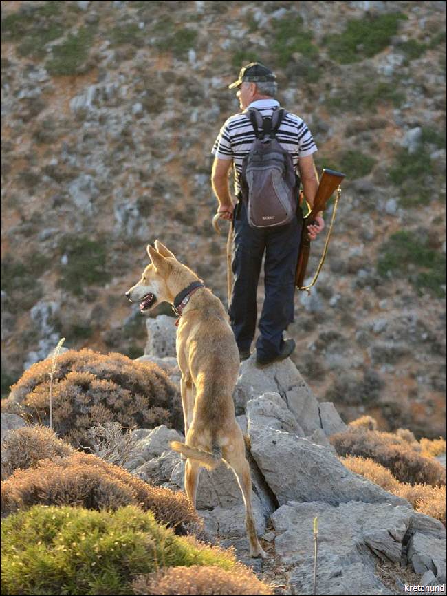 Allerdings erbringen die Hunde diese Leistungen nur bei entsprechend guter Bindung an ihren Halter, die nur durch viel Zuwendung entsteht. Die Ausbildung zum Jagdhund nimmt mehrere Jahre in Anspruch und erfordert viel Einfühlungsvermögen. Sie basiert auf einer guten Mensch-Hund-Beziehung, und es wird mit viel Ruhe und Geduld ohne unangemessene Härte gearbeitet. Bereits im Welpenalter werden die Hunde auf ihre Beute konditioniert, in dem sie z.B. an Stallkaninchen "üben" dürfen. Das entspricht natürlich nicht unserer Vorstellung von Tierschutz, auch wenn die Kaninchen dabei nicht verletzt werden, ist aber u.a. deshalb sinnvoll, weil die Hunde keine Tiere außerhalb der vorgesehenen Beute jagen dürfen. Die vielen Schafe und Ziegen, die auf Kreta allgegenwärtig sind, müssen sie bei der Jagd ignorieren. Zäune, die die Weidegebiete markieren, wie bei uns üblich, gibt es auf Kreta nicht. Auch die Jagdpacht ist auf Kreta unbekannt. Jeder, der eine Jagdlizenz erworben hat, darf dort jagen, wo es ihm beliebt. Auch außerhalb der Jagdsaison wird trainiert, manchmal auf extra dafür abgezäuntem Terrain, obwohl natürlich nicht jeder Jäger über diesen Luxus verfügt. Ein ausgebildeter Hund ist entsprechend wertvoll und teuer. Für einen Jäger, der in seinem Hund nur einen Gebrauchsgegenstand sieht, ist der Kritikós Lagonikós nicht geeignet. |