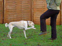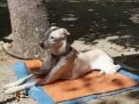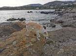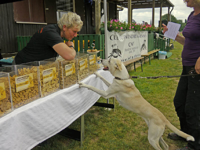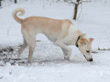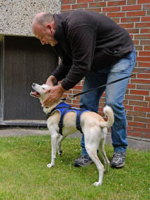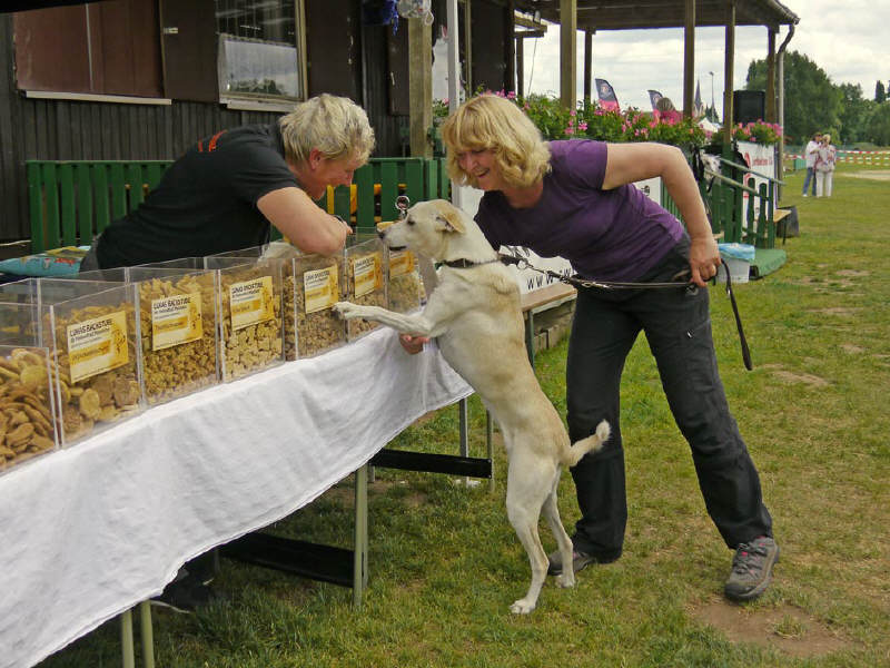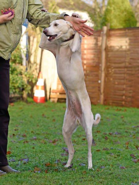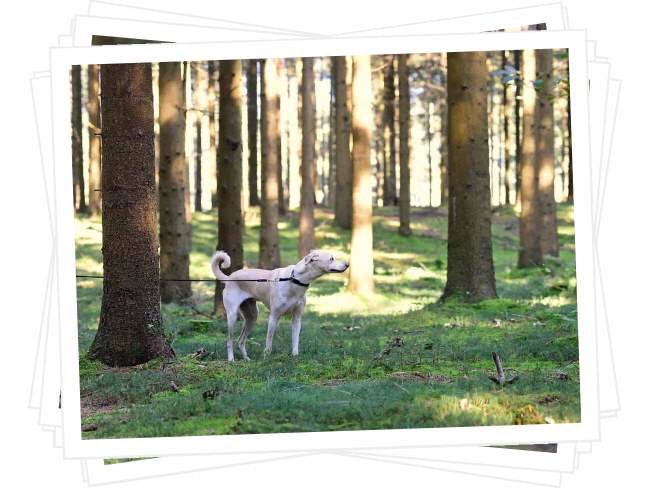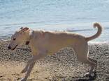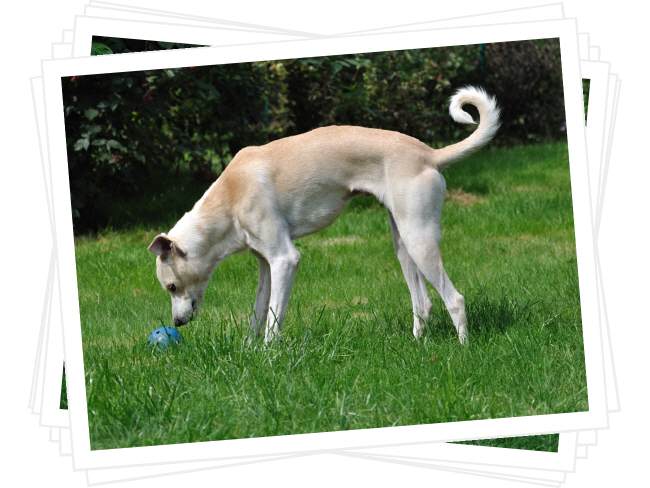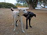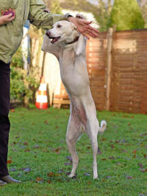 Der Rüde "Kalokairi", sein Name bedeutet "Sommer", wurde im November 2010 in Sitia/Kreta geboren und kam im Alter von ca. 10 Monaten zu uns. Tierschützer auf Kreta hatten ihn nach einer schweren Verletzung gesund gepflegt. Eigentlich wollten wir nur Pflegestelle für Kalli sein, aber er fügte sich so gut in unser bestehendes Rudel ein und bezauberte uns mit seinem Charme, also blieb er bei uns. Er hat Agility ohne Turnierambitionen und Tricktraining gemacht. Höchste Motivation zeigte er beim Mantrailing, war als Sporttrailer Weiß B geprüft. Im April 2017 haben wir Kalokairi auf der Windhund-Zuchtschau auf Gut Basthorst zur Phänotypbestimmung den Richtern des Deutschen Windhundzucht- und Rennverbandes DWZRV (VDH) vorgestellt. So wurde er als erster Hund der Rasse Kritikos Lagonikos in das Register-Zuchbuch des DWZRV eingetragen, unter der Zuchtbuchnummer KL Reg.0-0001 . Leider ist unser Kalli am 17. Oktober 2025 von uns gegangen, in seinem 16. Lebensjahr...