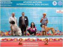 Antara hat vom Welpenalter an an einigen Ausstellungen teilgenommen und ist mittlerweile Deutscher Schönheitschampion DWZRV. Das bedeutendste und aufregendste Ereignis für uns bisher war ihre Teilnahme an der größten Hundeausstellung der Welt, der World Dog Show in Genf im August 2023. Antara wurde als beste Hündin ihrer Rasse World Cup Winner! Außerdem bekam sie die Anwartschaft auf den Schweizer Champion. Im Oktober 2023 hatten wir das erste Mal die Gelegenheit, sie im Herkunftsland der Rasse vorzustellen, sie nahm an zwei Tagen an der Internationalen Rassehunde-Ausstellung in Athen teil und ging beide Male als bester Hund der Rasse mit der Anwartschaft auf den griechischen Champion aus dem Ring. Bei der Konkurrenz des besten Hundes der griechischen Rassen wurde sie auf den 3. Platz gewählt. 2024 erlief sie in Gelsenkirchen den Titel German Winner 2024. Im Mai 2025 konnte Antara bei der jährlichen Zuchtschau des Kritikos Lagonikos auf Kreta dabei sein. Fast 70 Hunde der Rasse waren an zwei Tagen zu sehen, davon 16 im Ring der Nationalen Zuchtschau. An beiden Tagen wurde Antara, unter zwei verschiedenen Richtern, zweitbeste Hündin der Schau.