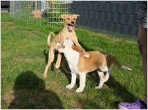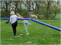 Mit 15 Monaten hat sie bereits die Begleithundprüfung im DVG bestanden und läuft mittlerweile erfolgreich in Agility-Wettbewerben.